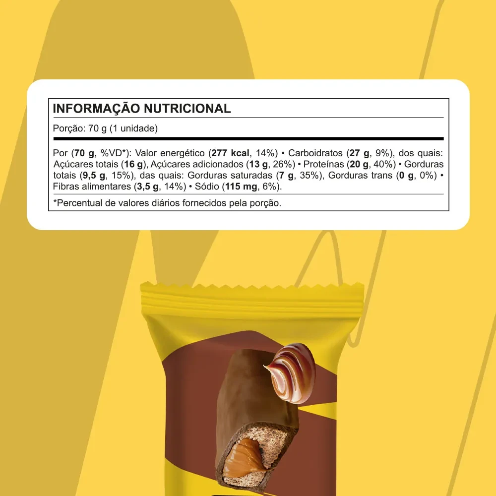 A ProtoBar é uma barra de proteína composta por diferentes fontes proteicas. É rica em proteínas de alto valor biológico e prática, proporcionando uma opção nutritiva e saborosa para as refeições intermediárias ao longo do dia. Também é adicionado o Fiber 3, um mix de fibras prebióticas. Diferenciais Adicionado de vitaminas e minerais; Alto teor proteico por 70g de produto; Aporte de fibras prebióticas (Fiber 3); Adicionado de vitamina D3.