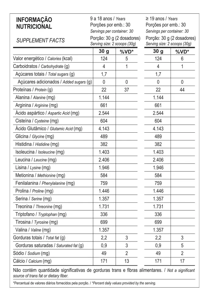 Cada porção fornece 22 g de proteína e 4.871 mg de BCAAs naturalmente presentes, aminoácidos importantes na composição das proteínas. O produto possui sabor baunilha, com aromas e edulcorantes naturais, além de apresentar fácil dissolução e preparo rápido para o dia a dia.