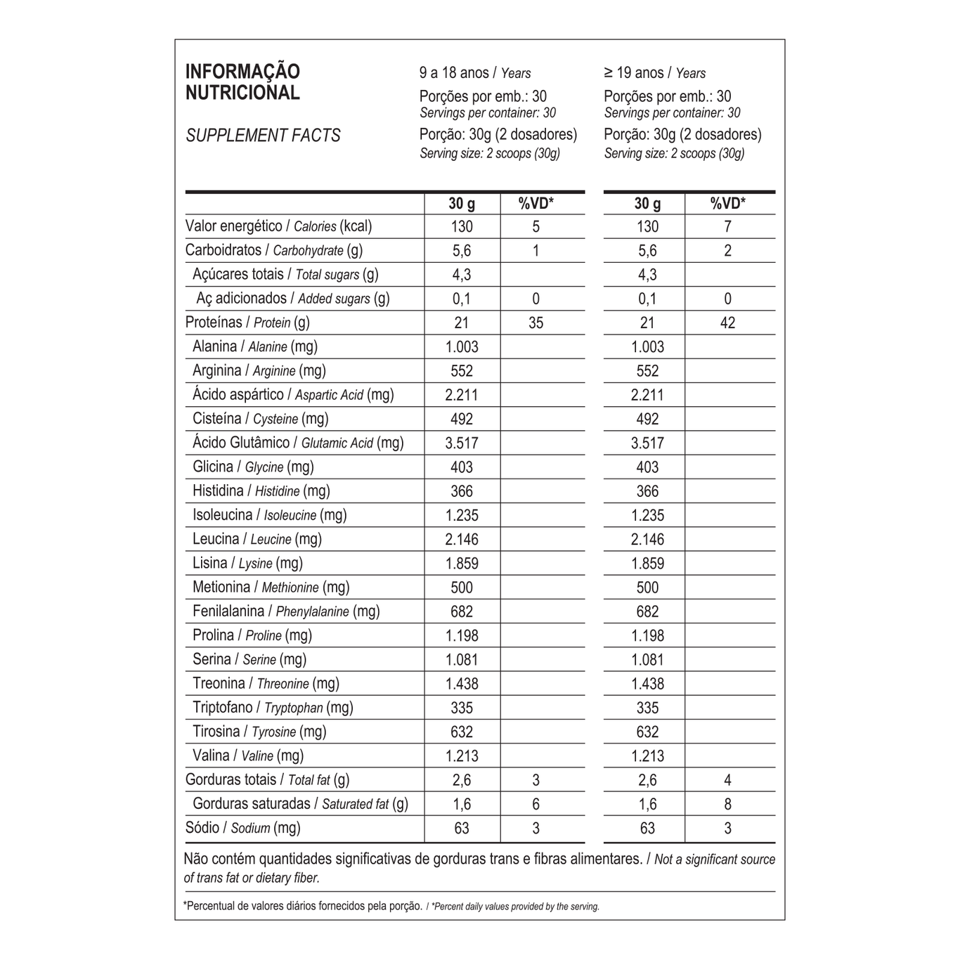 Com excelente palatabilidade, fácil diluição e rápida digestibilidade, é um aliado da alimentação saudável e da prática de exercícios, auxiliando na construção muscular e na recuperação pós-treino.
