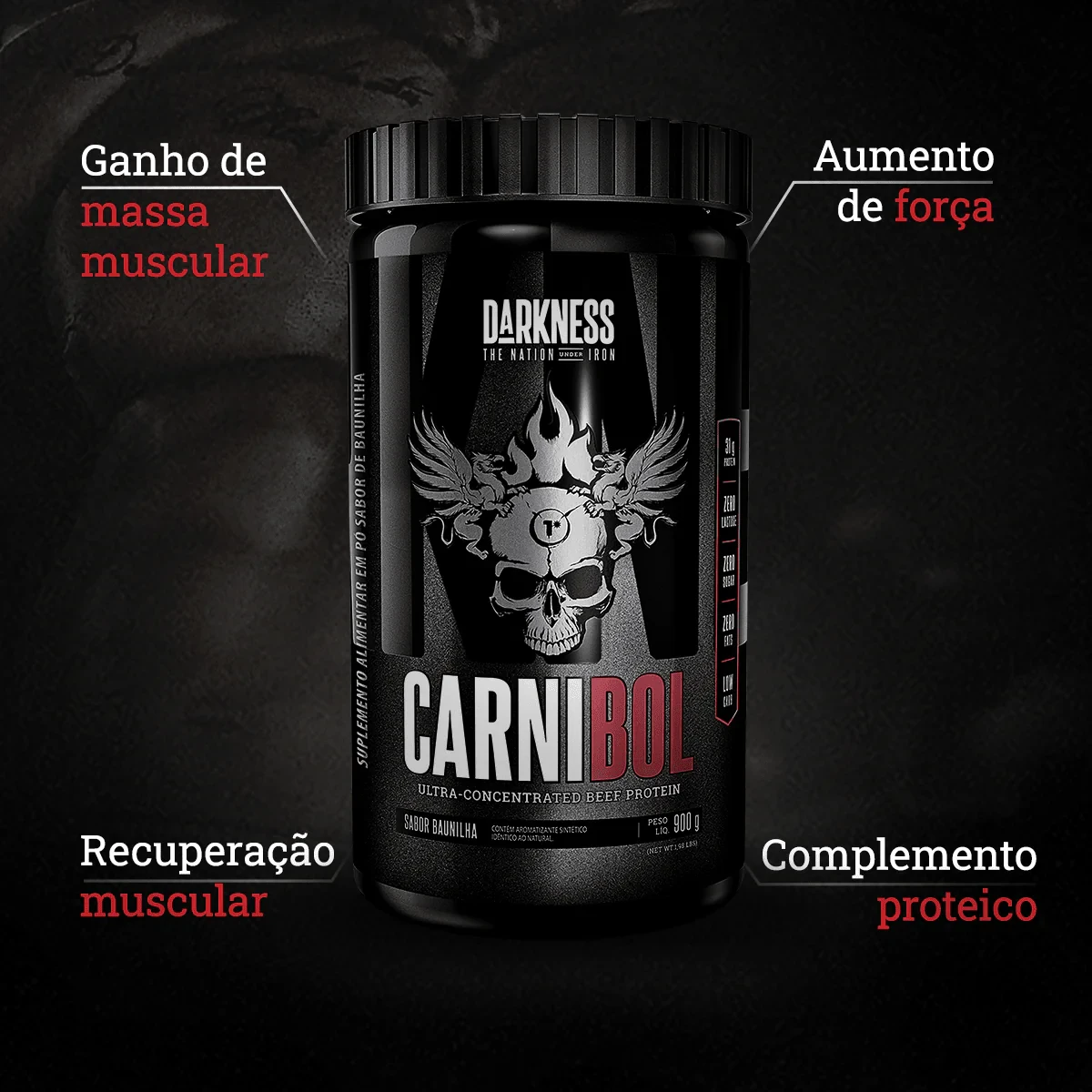 Carnibol Darkness é um suplemento alimentar em pó formulado com proteína de carne bovina e peptídeos de colágeno hidrolisado (ProMyoBlend®), desenvolvido para complementar a ingestão diária de proteínas. A fórmula oferece alto aporte proteico, com baixo teor de gorduras e sem lactose, sendo uma alternativa para pessoas que preferem evitar proteínas de origem láctea.