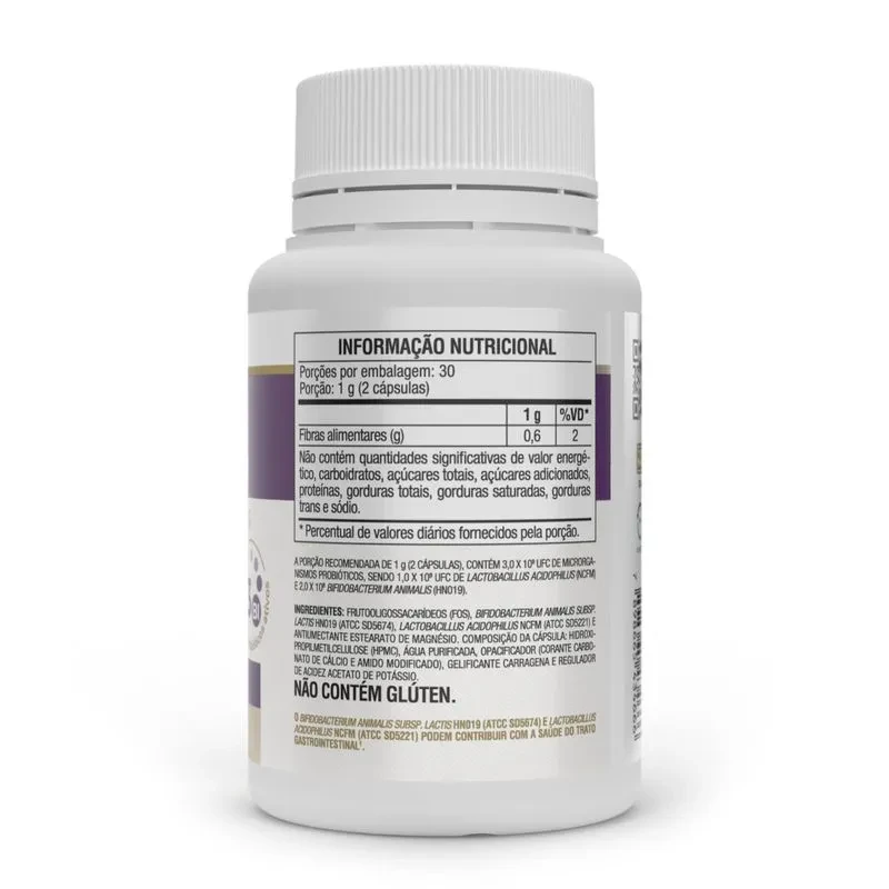 Contém duas cepas probióticas: Bifidobacterium animalis subsp. lactis HN019 e Lactobacillus acidophilus NCFM
