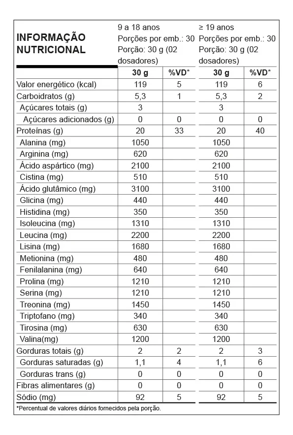 Diluir 30 g (2 dosadores) em aproximadamente 200 ml de água. Consumir 1 porção ao dia, ou conforme orientação de profissional de saúde.