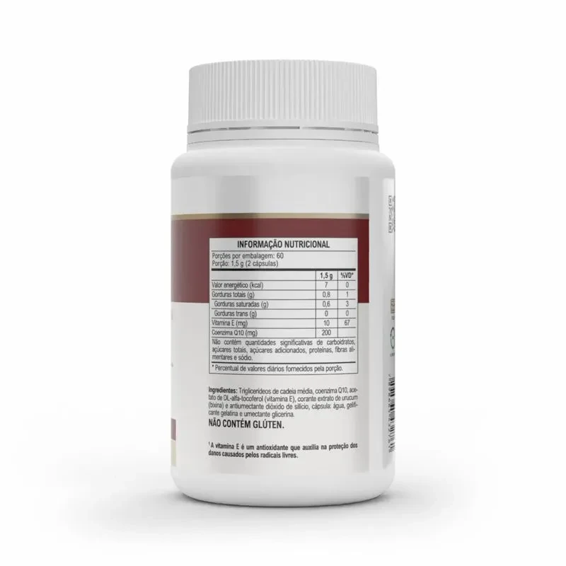 Cada porção fornece 200 mg de Coenzima Q10 e é fonte de vitamina E. Sua formulação em base lipossolúvel favorece a absorção do nutriente. Produto indicado para adultos a partir de 19 anos de idade.