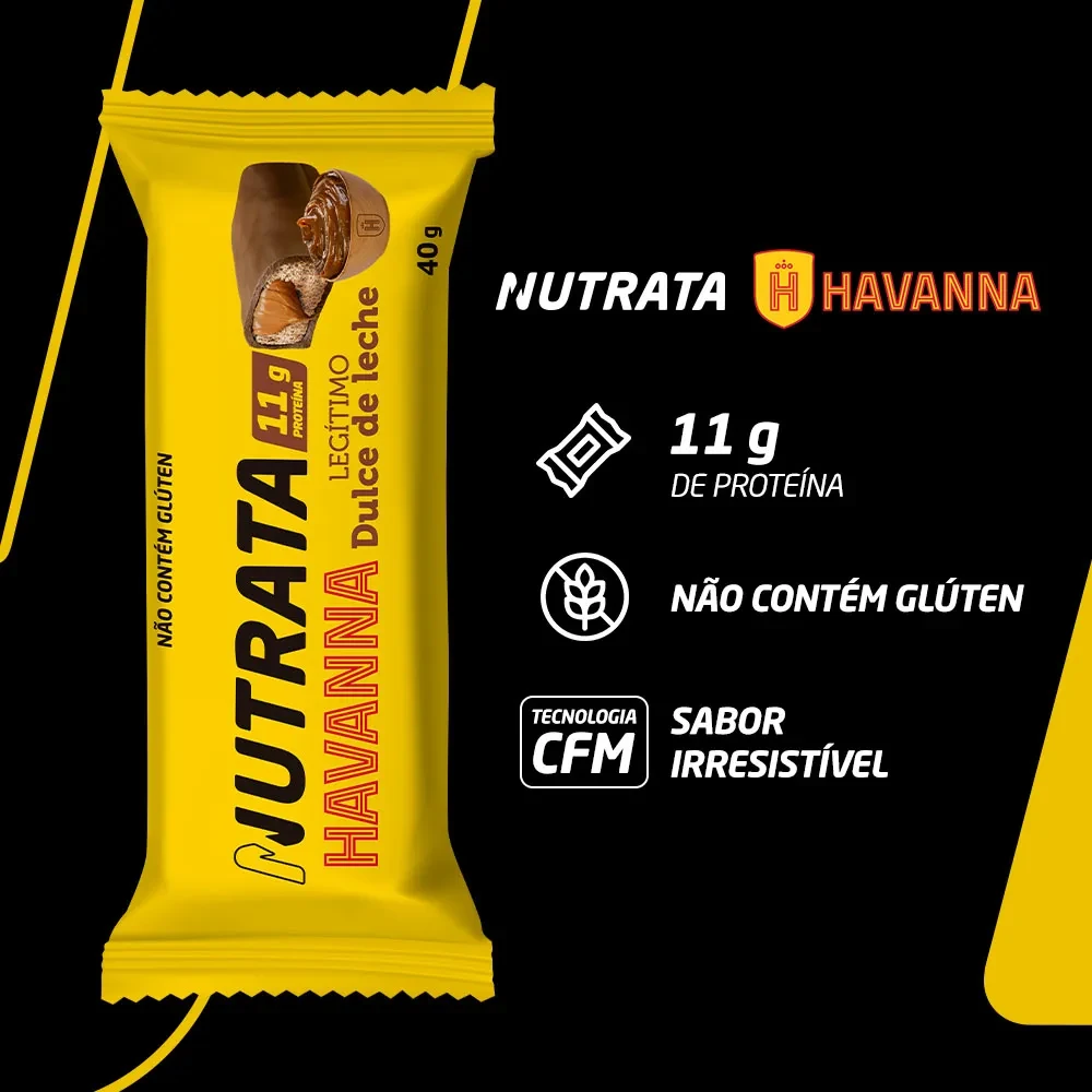 Blend proteico (caseinato de cálcio, proteína concentrada de leite, proteína de soro do leite concentrada, proteína de soro do leite isolada e colágeno hidrolisado), cobertura de chocolate meio amargo, recheio de doce de leite HAVANNA, óleo de palma (Elaeis guineenses), iogurte natural integral em pó, polidextrose, frutooligossacarídeos, Fiber 3® (inulina – fibra da raiz da chicória, goma de acácia purificada e goma guar parcialmente hidrolisada), goma acácia, vitaminas (acetato de retinol, colecalciferol, cloridrato de piridoxina, ácido fólico e cianocobalamina), minerais (sulfato de zinco, selenito de sódio e picolinato de cromo), aromatizantes, cloreto de sódio, edulcorantes sorbitol, umectante glicerol, antiumectante fosfato tricálcico, emulsificante lecitina, conservantes sorbato de potássio e benzoato de sódio, antioxidante dl-alfa-tocoferol, corante caramelo IV.
