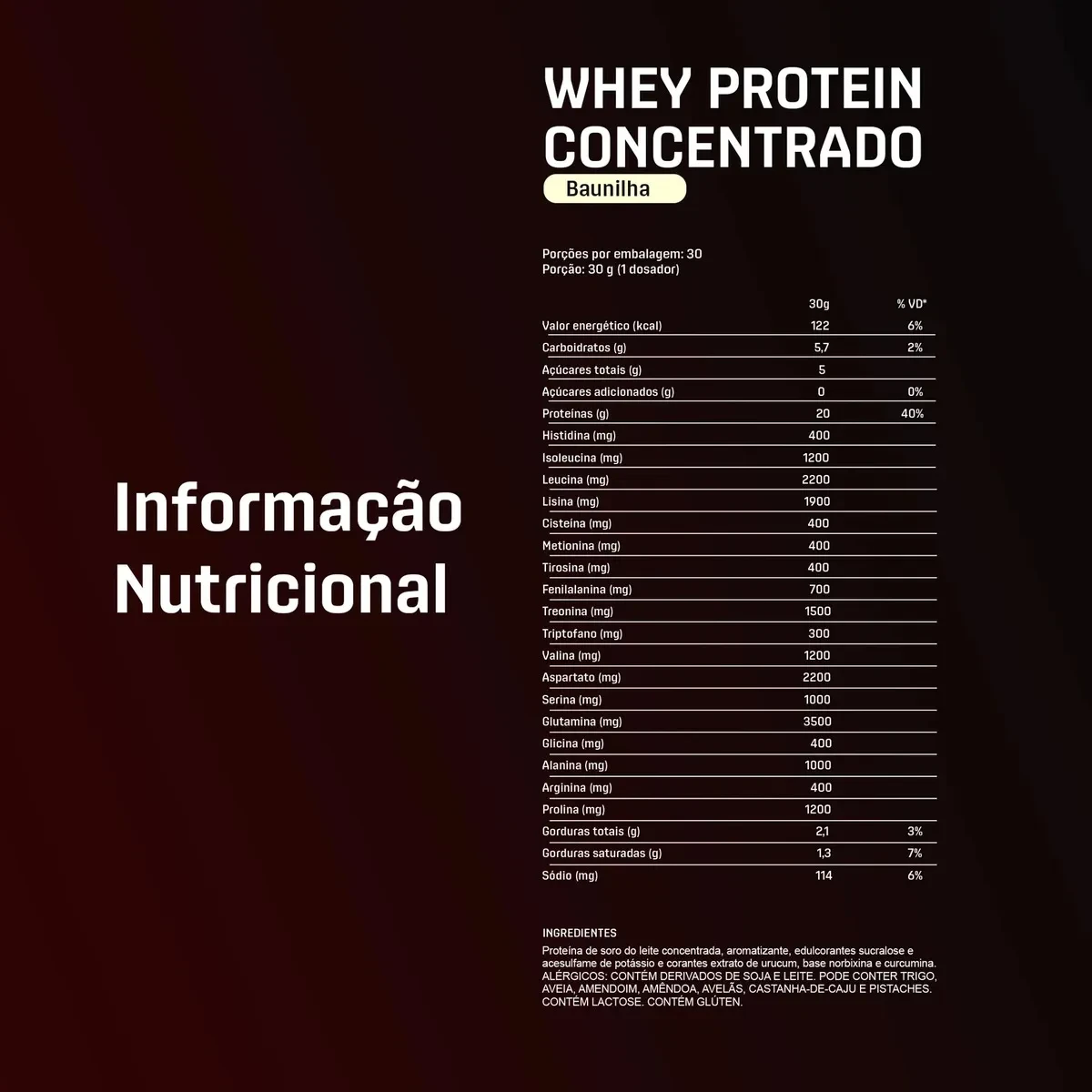 - Proteína concentrada 100% pura: sem blends, feita exclusivamente do soro do leite.