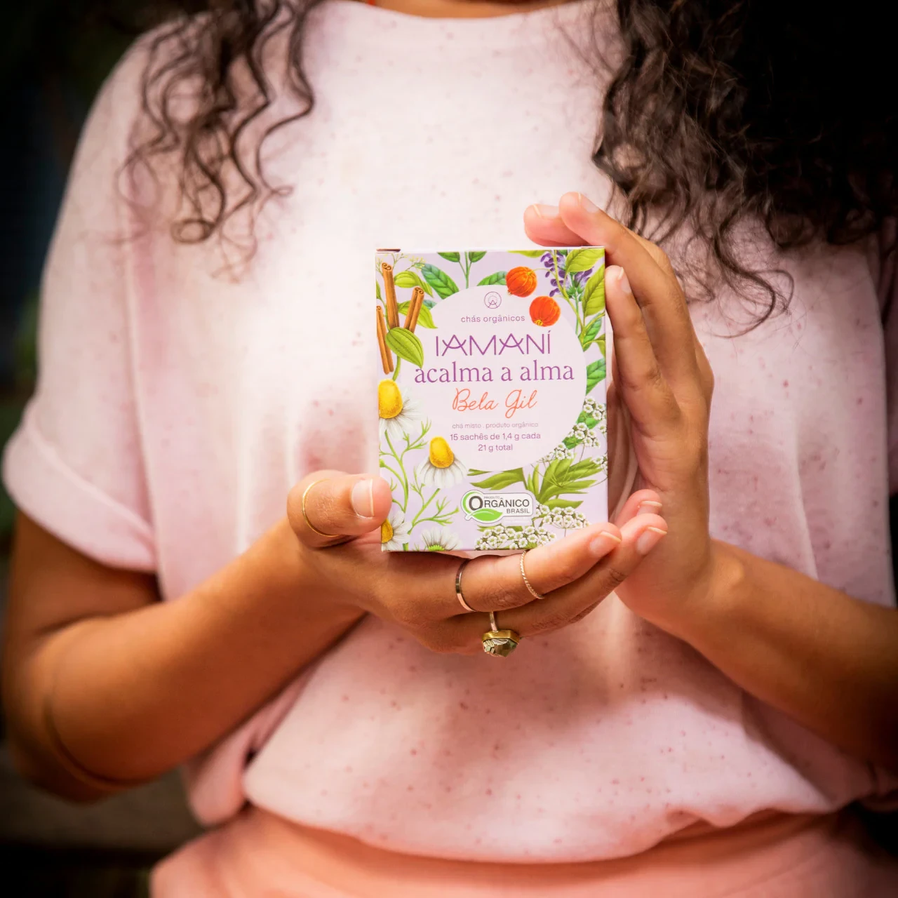 - O Chá Orgânico Acalma a Alma da Iamaní é um blend com propósito calmante e relaxante, desenvolvido em parceria com a chef Bela Gil.