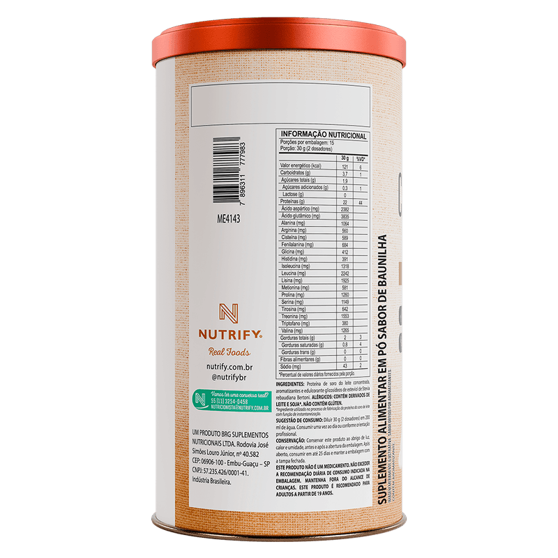 O CleanPro Whey Zero Lactose Nutrify é um whey protein desenvolvido com proteína isolada e hidrolisada do soro do leite, oferecendo alta absorção e excelente digestibilidade.