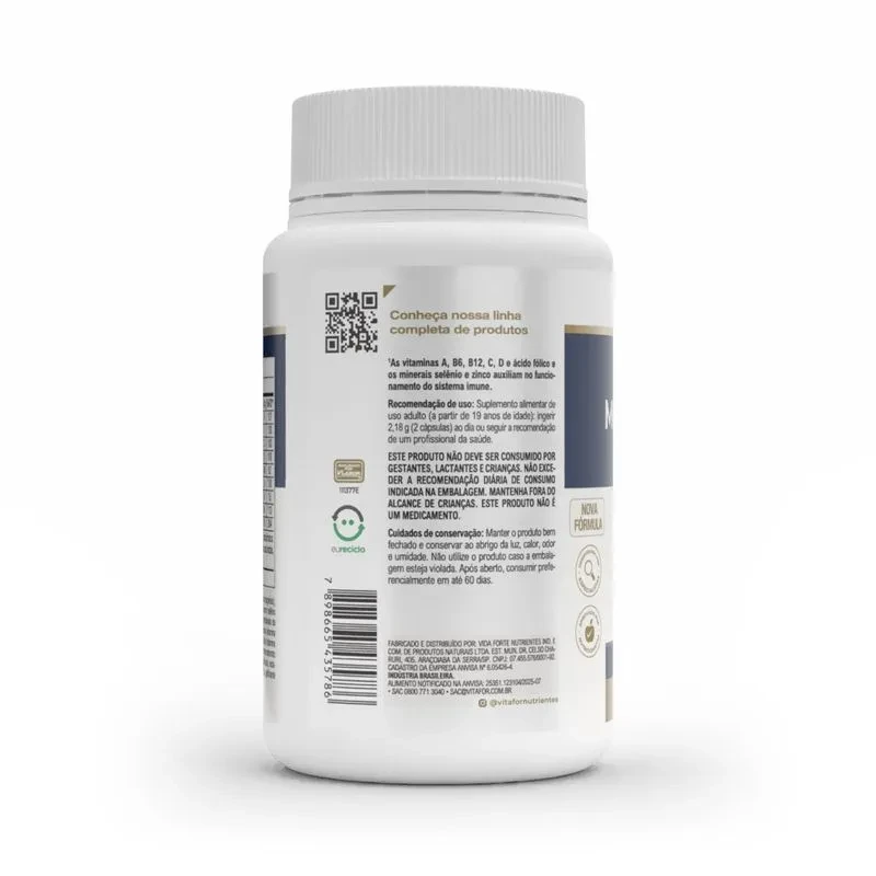 O Imunomult Multivitamínico é um suplemento alimentar completo à base de vitaminas e minerais, desenvolvido para complementar a ingestão diária de micronutrientes essenciais. Sua fórmula reúne altas concentrações de vitamina C, vitamina D, zinco e selênio, além de um complexo de vitaminas do grupo B e N-acetil L-cisteína (NAC). Com zero adição de açúcares, livre de glúten e em formato cápsulas, oferece praticidade para o dia a dia com uma composição equilibrada.
