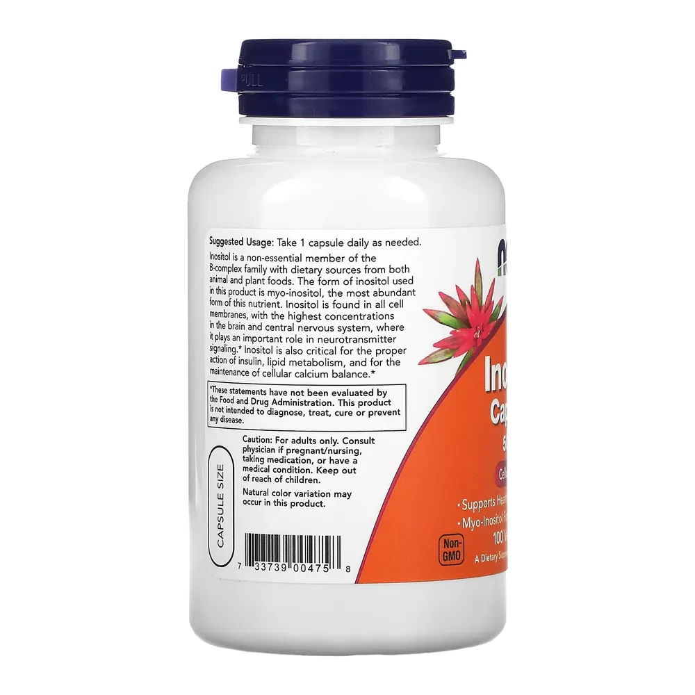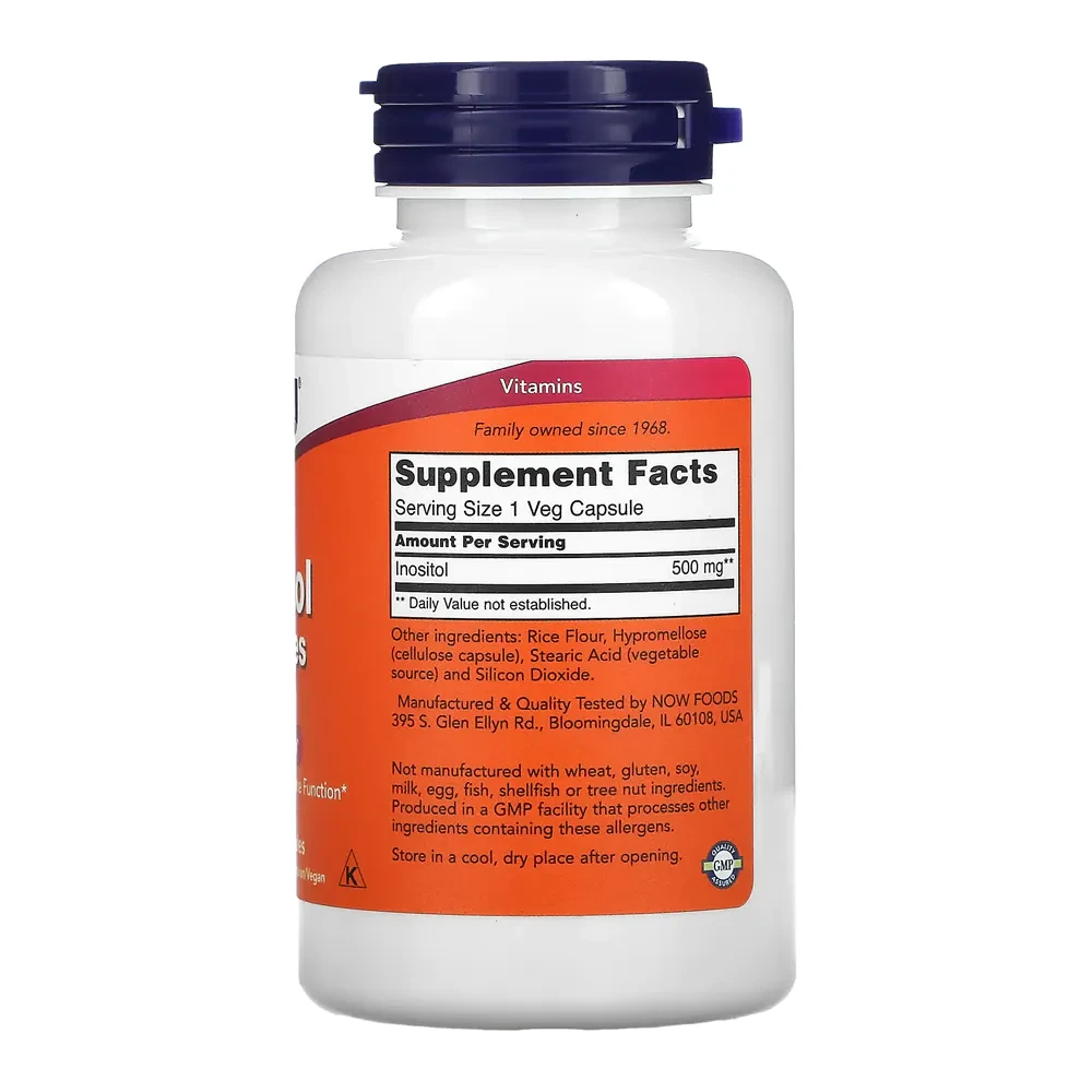 O Inositol 500mg Now Foods é um suplemento alimentar importado, desenvolvido com padrão internacional de qualidade. Cada cápsula vegetal fornece 500mg de inositol, oferecendo praticidade e facilidade para o consumo diário.