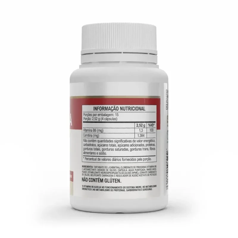 A vitamina B6 auxilia no funcionamento do sistema imune e no metabolismo energético, além de contribuir para o metabolismo de proteínas, carboidratos e gorduras. Esses processos são fundamentais para o bom funcionamento do organismo, especialmente em uma rotina ativa. A combinação com a L-carnitina complementa a ingestão de nutrientes importantes para o equilíbrio metabólico.Ingredientes: