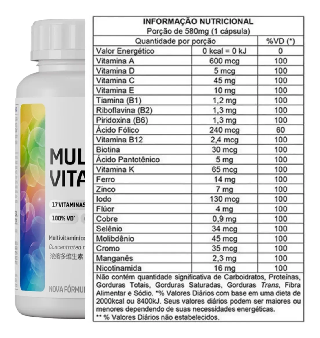 Entre os micronutrientes que frequentemente apresentam baixos níveis na população estão a vitamina D, o ferro e as vitaminas do complexo B, nutrientes importantes para diferentes funções do organismo. O multivitamínico reúne 17 vitaminas e minerais em uma fórmula equilibrada, desenvolvida para oferecer suporte nutricional completo de forma simples e conveniente.