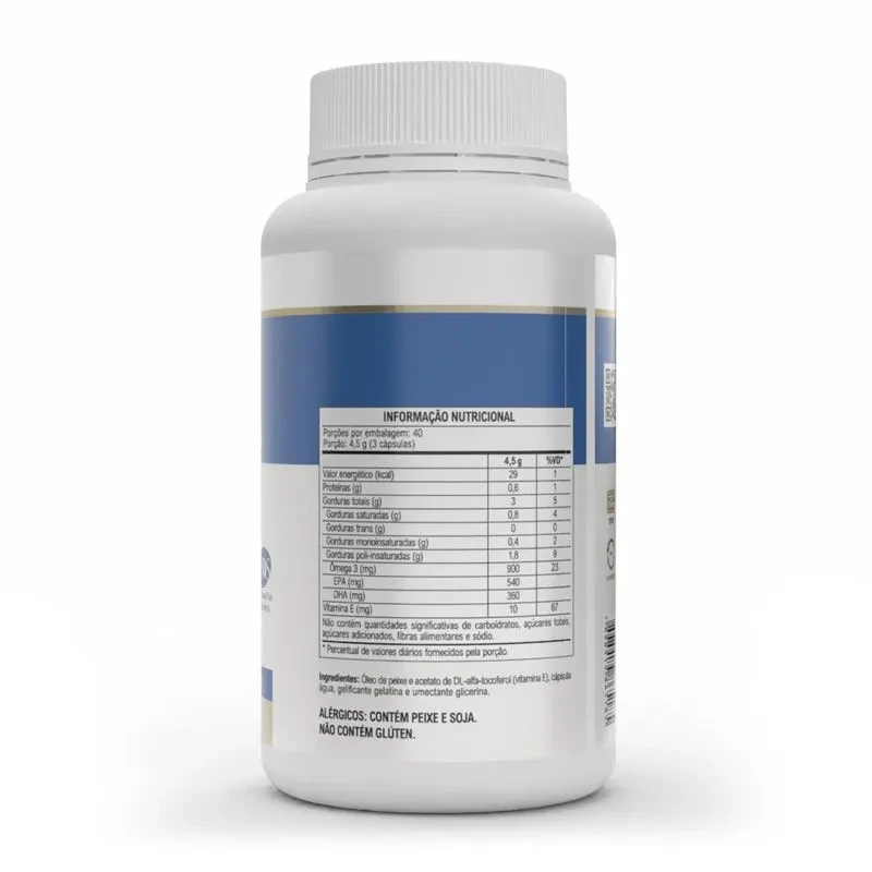 Nesta fórmula, cada porção fornece 540 mg de EPA e 360 mg de DHA, combinados com vitamina E, que contribui para a estabilidade do produto e auxilia na proteção das células contra os radicais livres, complementando a ingestão desses nutrientes no dia a dia.