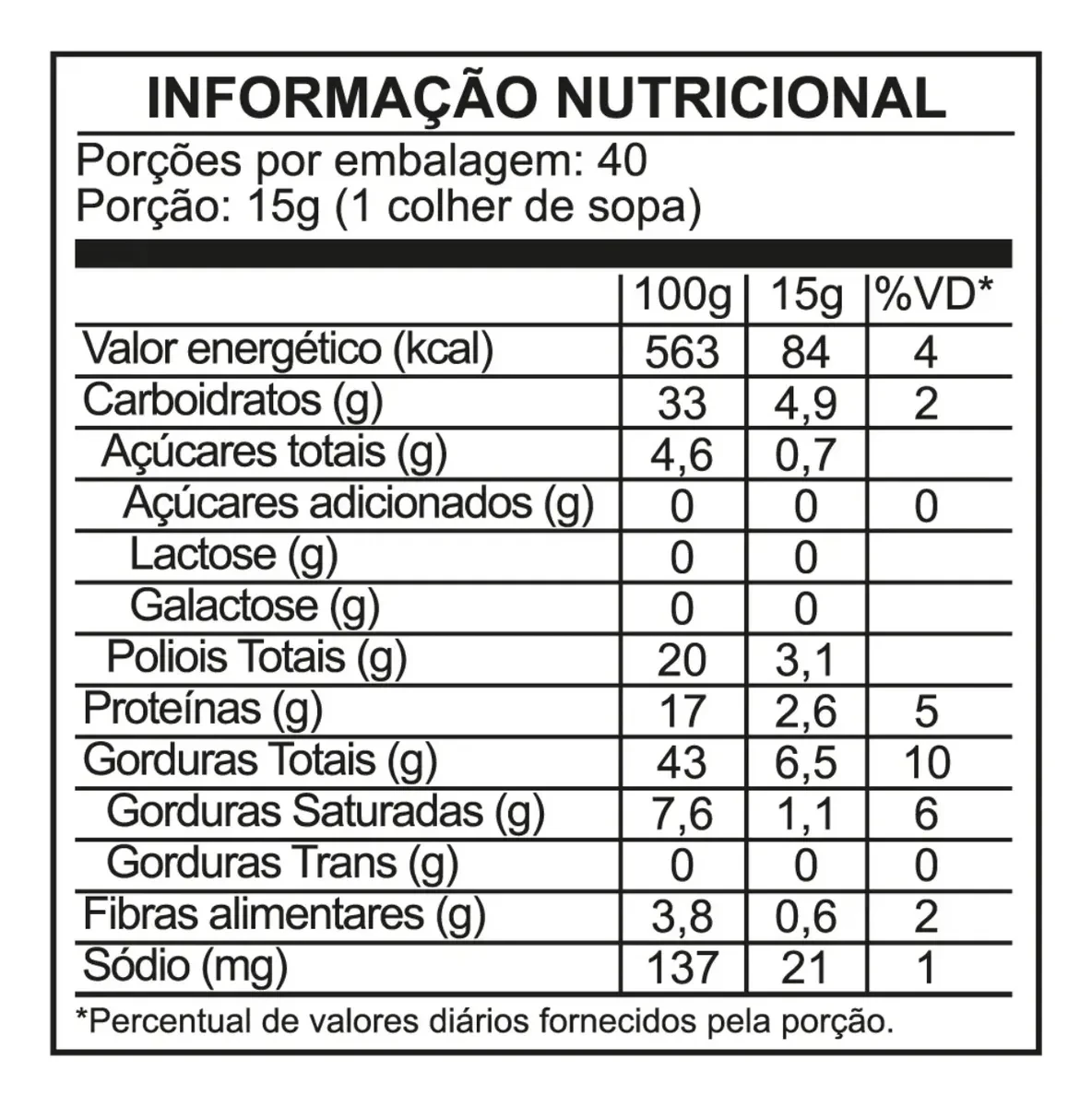 ALÉRGICOS: contém amendoim e derivados de leite e soja. Pode conter avelãs, castanha-do-pará, castanha-de-caju, aveia, ovos, macadâmias, nozes, pistaches e amêndoa.