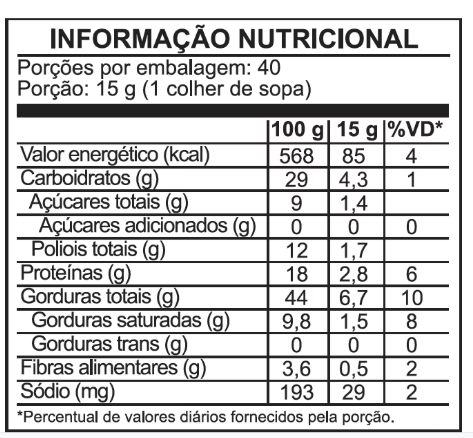 ALÉRGICOS: CONTÉM AMENDOIM E DERIVADOS DE LEITE E SOJA. PODE CONTER AVELÃS, CASTANHA-DO-PARÁ, CASTANHA-DE-CAJU, AVEIA, OVOS, MACADÂMIAS, NOZES, PISTACHES E AMÊNDOA.
