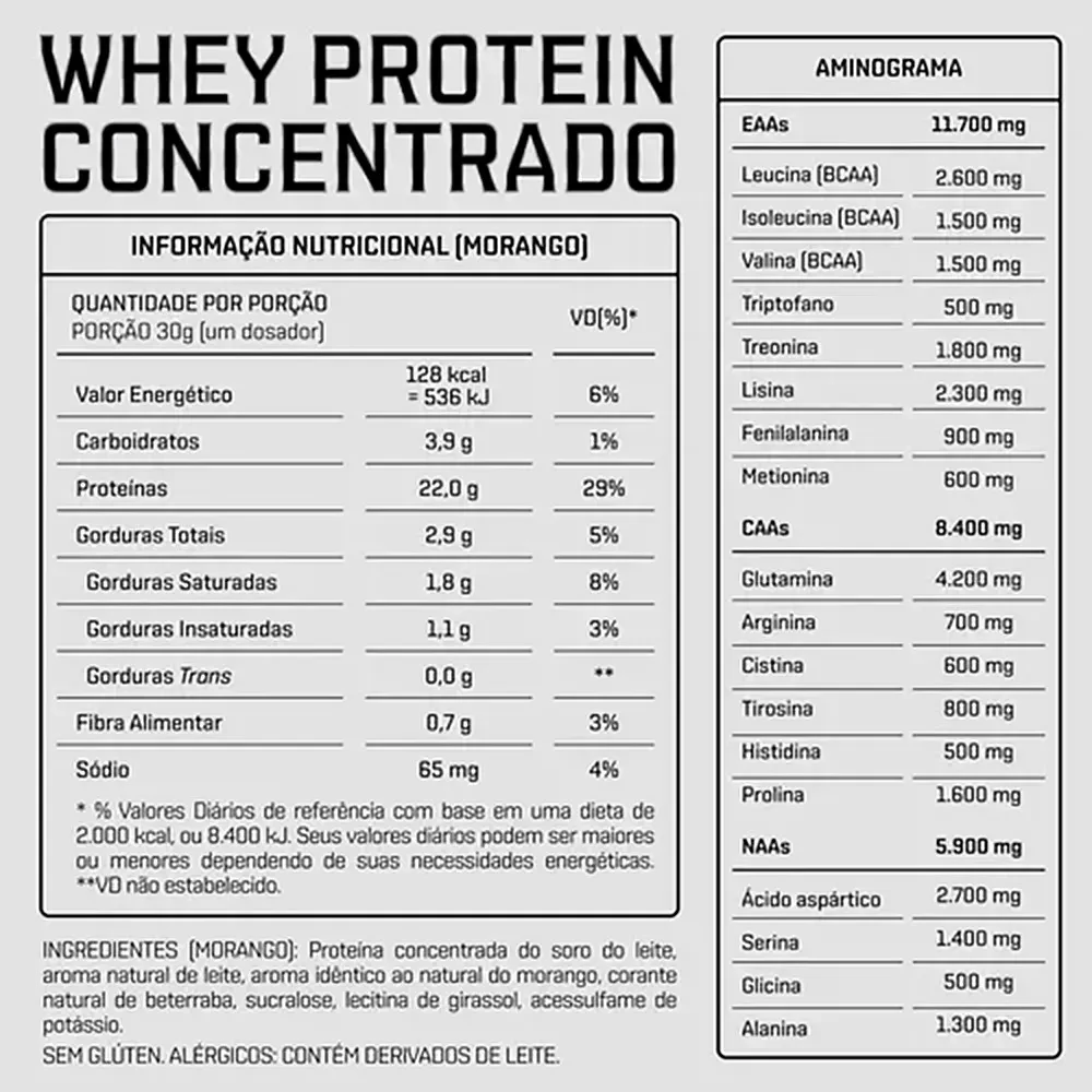 O Whey Protein Concentrado é uma proteína derivada do soro do leite, reconhecida por seu alto valor biológico e excelente perfil de aminoácidos. Produzido a partir de proteína concentrada 100% pura, não possui blends ou adição de outras fontes proteicas, garantindo maior qualidade e transparência na composição.